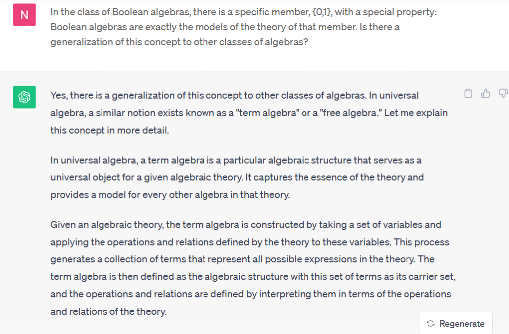 is a logical generating subclass of the class of Boolean algebras and the class of permutation groups is a logical generating subclass of the class of groups.